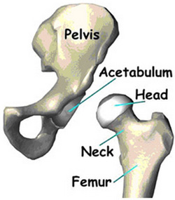 The hip is one of the body's largest weight-bearing joints. It consists of two main parts: a ball (femoral head) at the top of your thighbone (femur) that fits into a rounded socket (acetabulum) in your pelvis. Bands of tissue called ligaments (hip capsule) connect the ball to the socket and provide stability to the joint.
